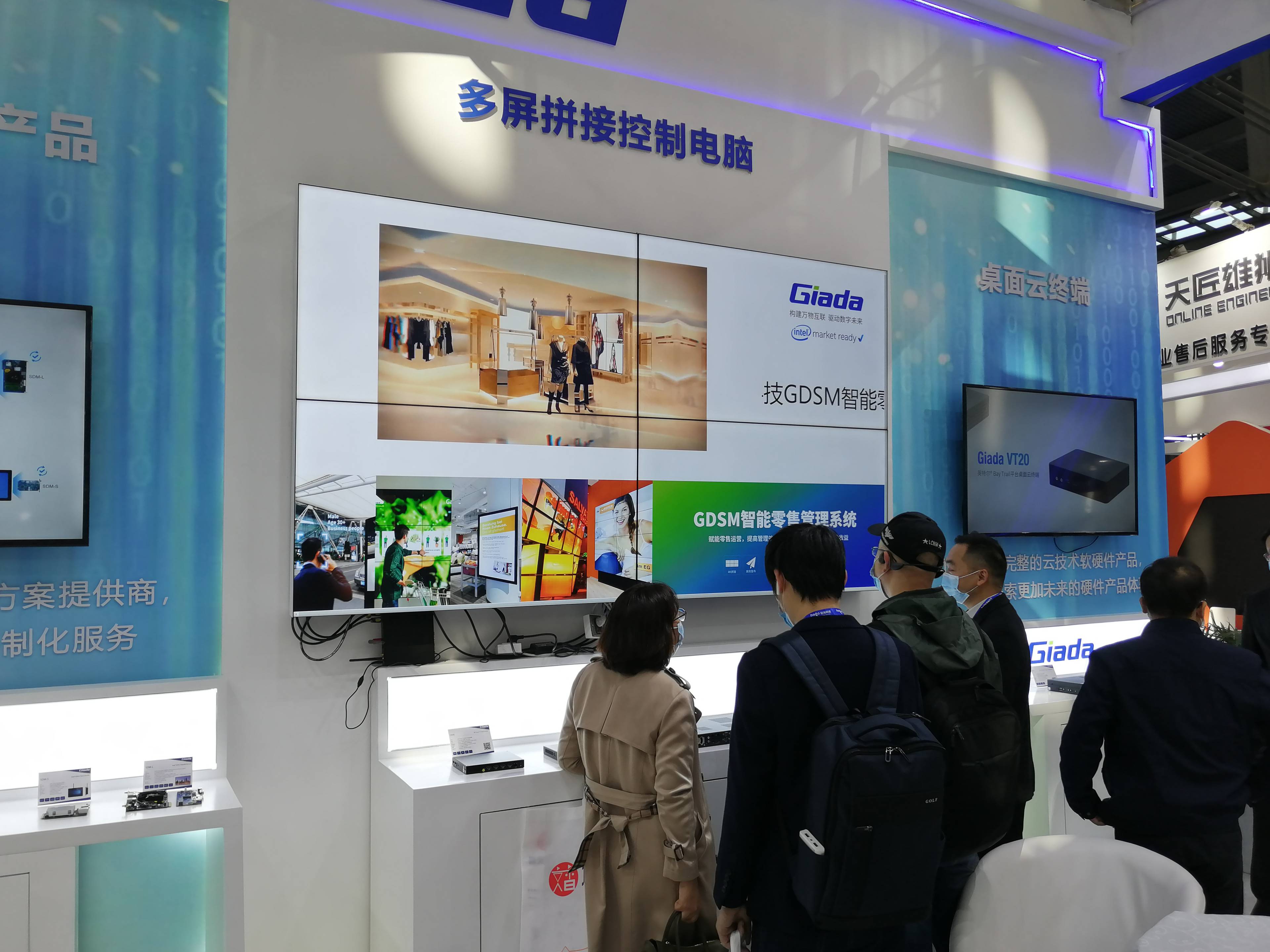 紧邻ARM架构商显产品集的精准推送展示区与零售门店模拟展区,共同组成了本届展会南宫NG·28(中国)相信品牌力量科技展位的一大精彩设计。场景展现了GDSM智能零售管理系统在零售门店场景下的展示效果,顶部的数字标牌由GDSM系统推送内容,模拟搭建了针对人流动线的广告精准推送形态。